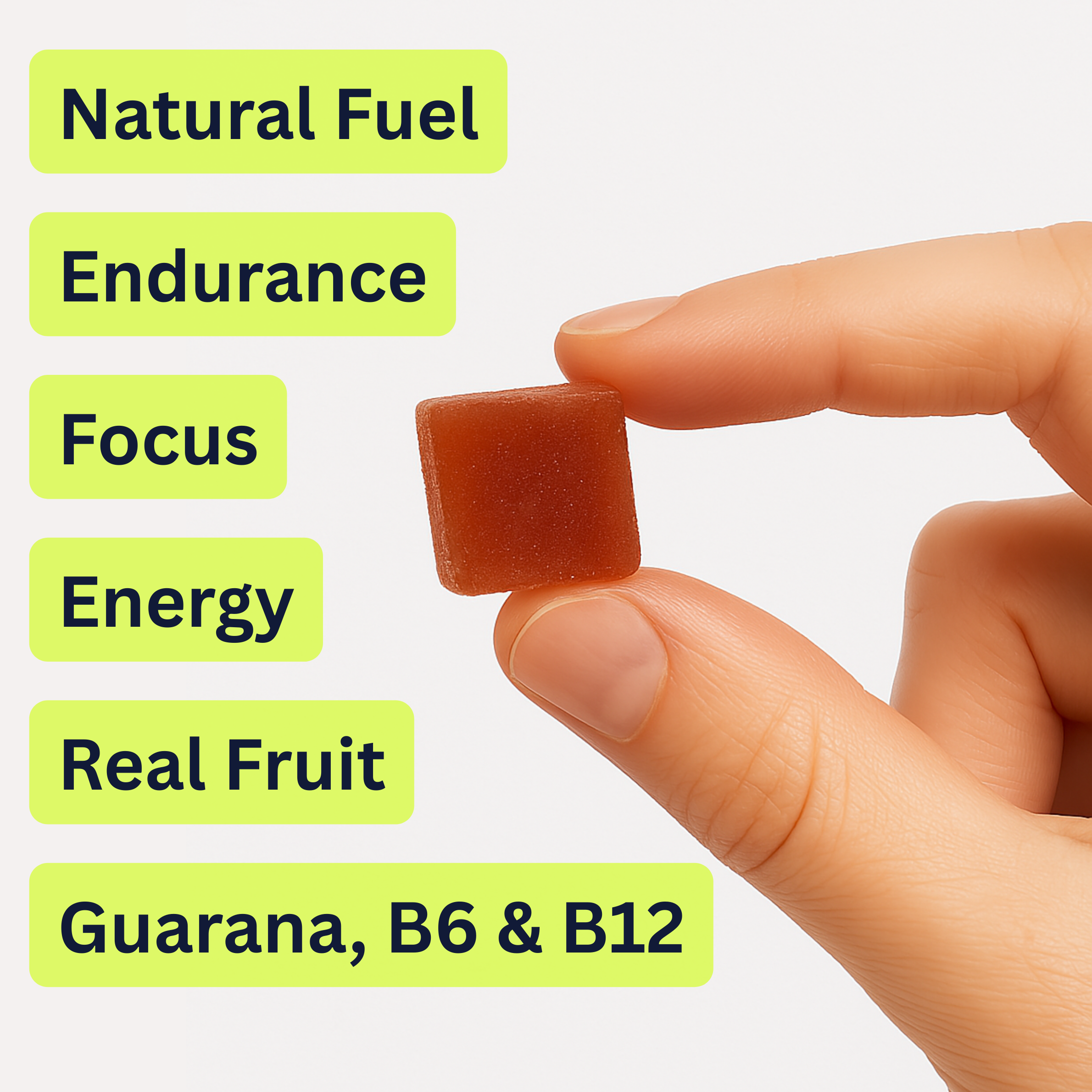 • Unlike energy drinks or coffee, our gummies providea smooth, long-lasting boost—without jitters or crashes. Made withreal fruit, guarana, and B vitamins, they keep you energizednaturally and conveniently.
