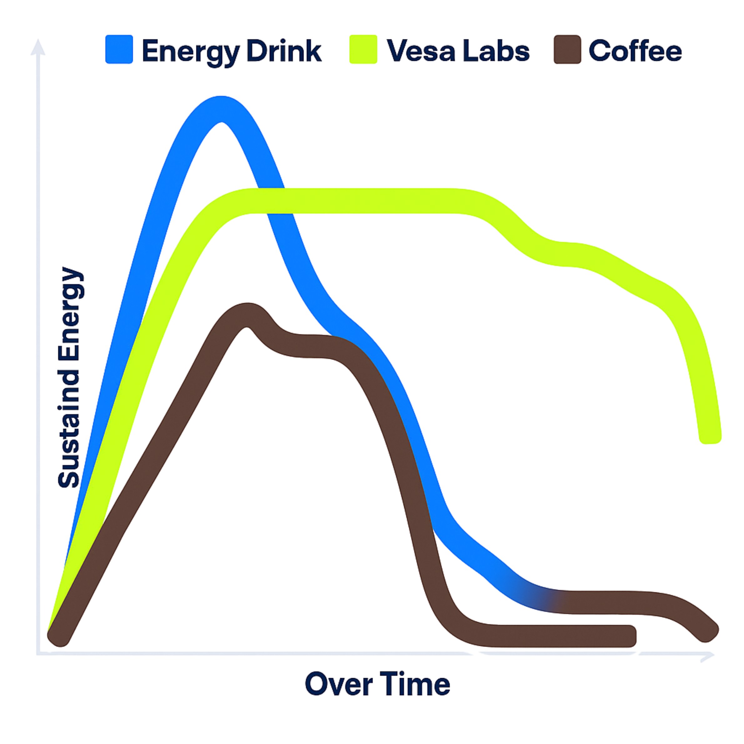 Now imagine this instead: you pop a Vesa Labs Energy Gummy, and just minutes later — boom — you’re focused, dialed in, and ready to go. Here’s why our gummies hit faster and smoother than traditional energy drinks.